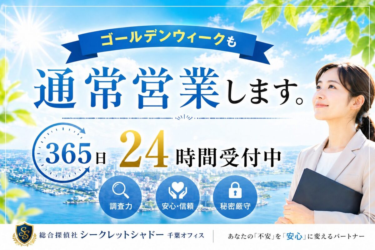「総合探偵社シークレットシャドー千葉オフィス」では、千葉県千葉市を中心に浮気調査・不倫調査・素行調査・人探し・行方調査など幅広く対応しております。地域に密着した調査力と迅速な対応で、多くのご相談をいただいております。